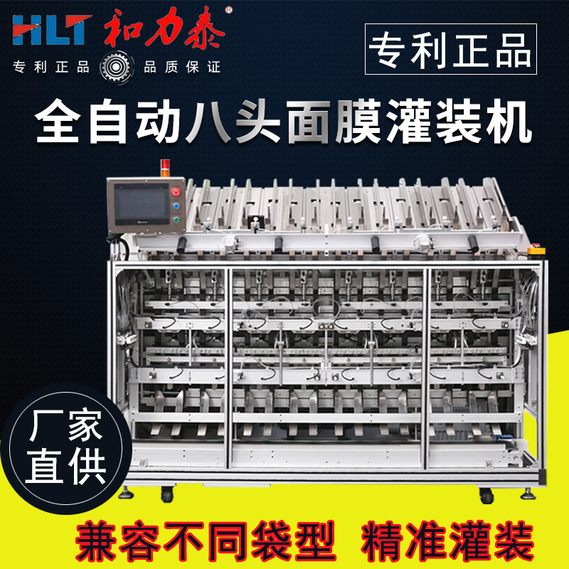 和力泰面膜灌裝機又分四頭面膜灌裝機、六頭面膜灌裝機、八頭面膜灌裝機、十頭面膜灌裝機、雙腔面膜灌裝機、三部曲面膜灌裝機、異型面膜袋灌裝機,高配定制面膜灌裝設備;